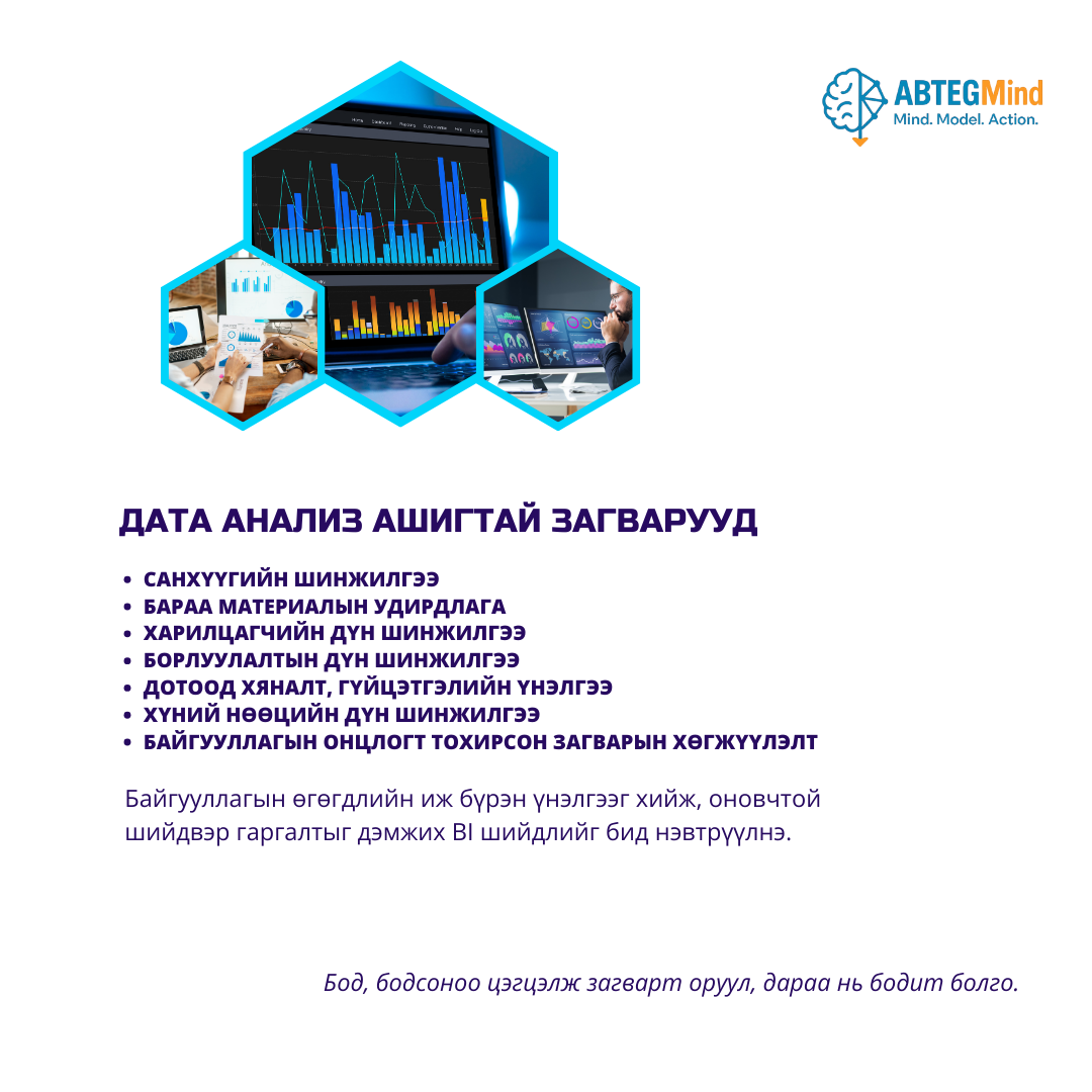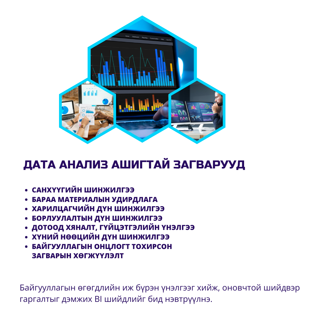 Бид бизнес анализ болон дата анализийн чиглэлээр 10+ жилийн туршлагатай.